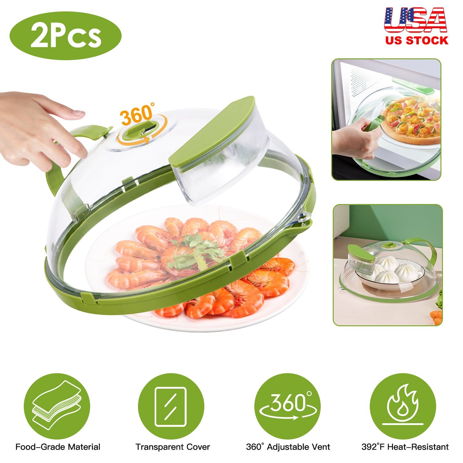 Home > 2Pcs Transparent Microwave Covers for Food Splatter Cover Lid Food Splatter Guard Protector with Handle Adjustable Steam Vents Water Storage Box