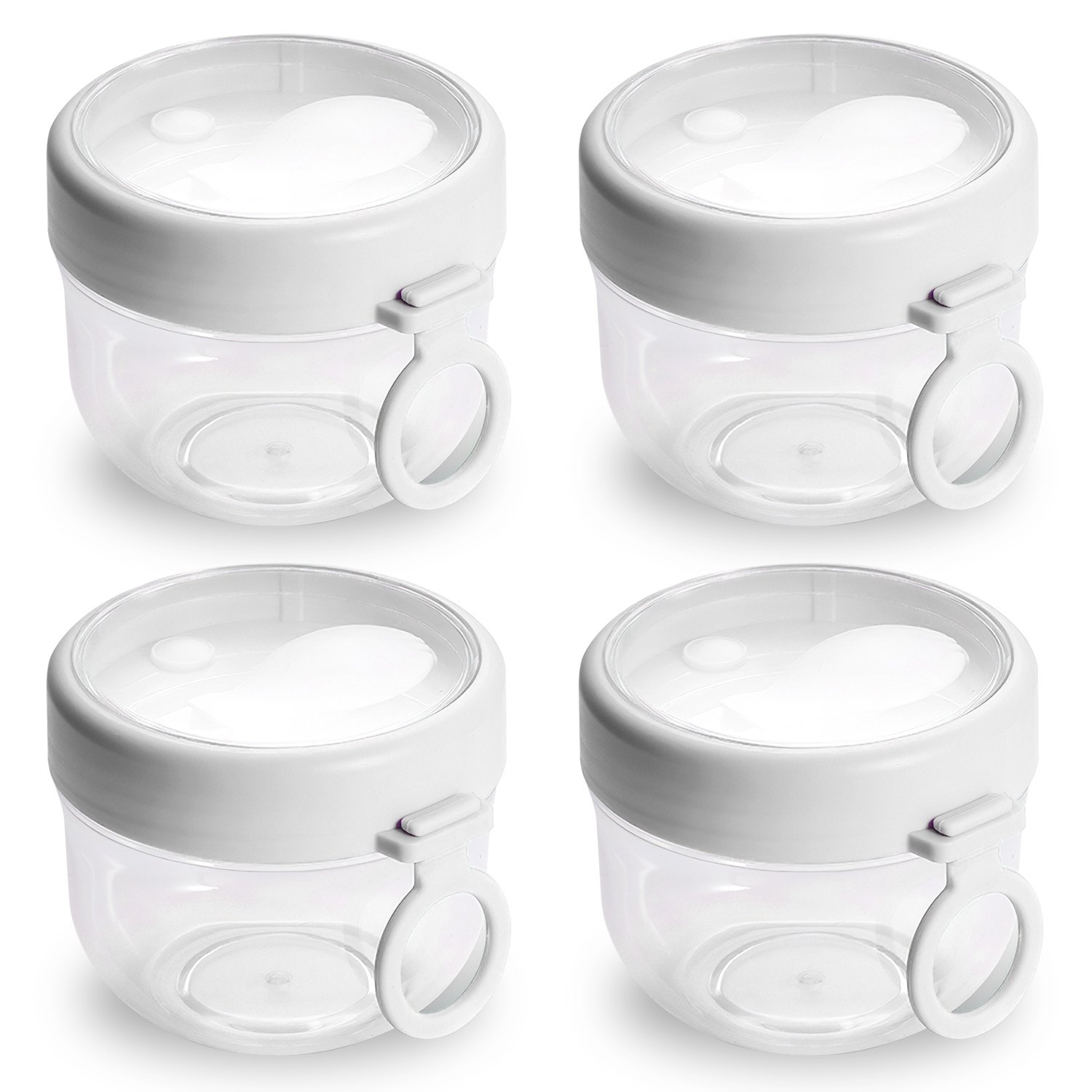 Each oat container is designed to hold about 600ML/20OZ of your homemade overnight oats, 4Pack oat container set made from premium PC material is perfect for providing a nutrient-rich and low-calorie breakfast solution for your whole family breakfast. Foldable spoon on the lid is convenient for eating on the go without carrying an extra spoon. Secure seal circle is leak-proof, ensuring freshness and flavors of inside meal while preventing spills. Suitable for overnight oats, yogurt, parfaits, simple salads, milk, smoothies, nuts and more.