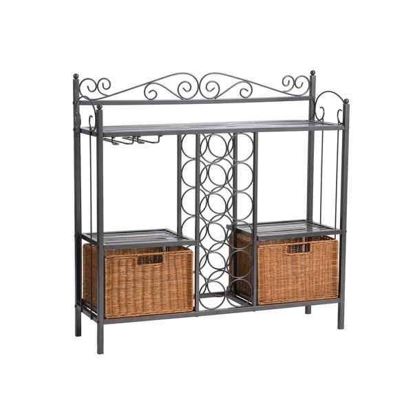 Home > Kitchen Dining Baker's Rack with Wine Storage and Rattan Baskets