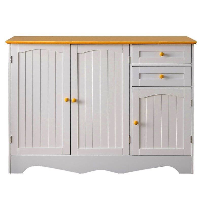 • White Wood Sideboard Buffet Cabinet with Light Brown Top and Knobs